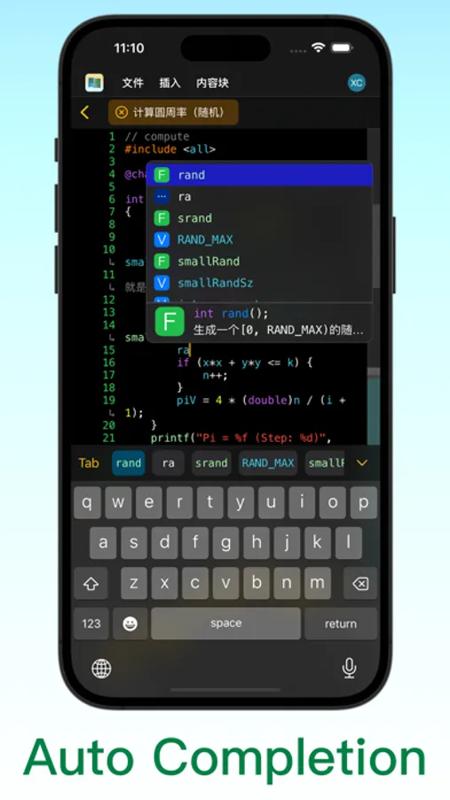 Of course, the code editor won't let you down either. Supports syntax highlighting, syntax hints and very smart auto-completion and code formatting. Although the code is embedded in the note, you can still complete a piece of code by abbreviating very easily.