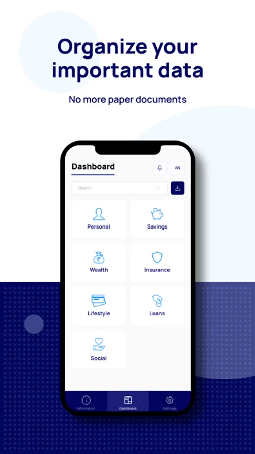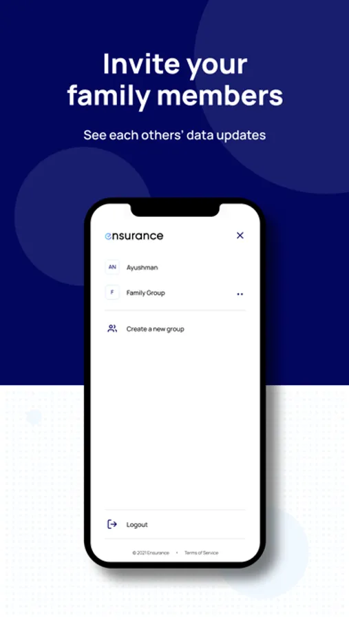 nsurance is an app to help users organize, save, update important information, and share it with their families. It allows users to create groups, add immediate or extended family members, and access each other's data. It also includes an information section to find simple meanings and definitions of financial terms. It's a tool to help users organize their present, to secure their family's future – without the hassle of managing paper documents.