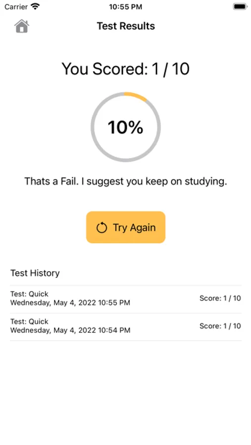 At the end of each set of questions, your score will be tallied and see the results if you passed or failed. Practice as many times as needed to get comfortable before taking on the real theory test.