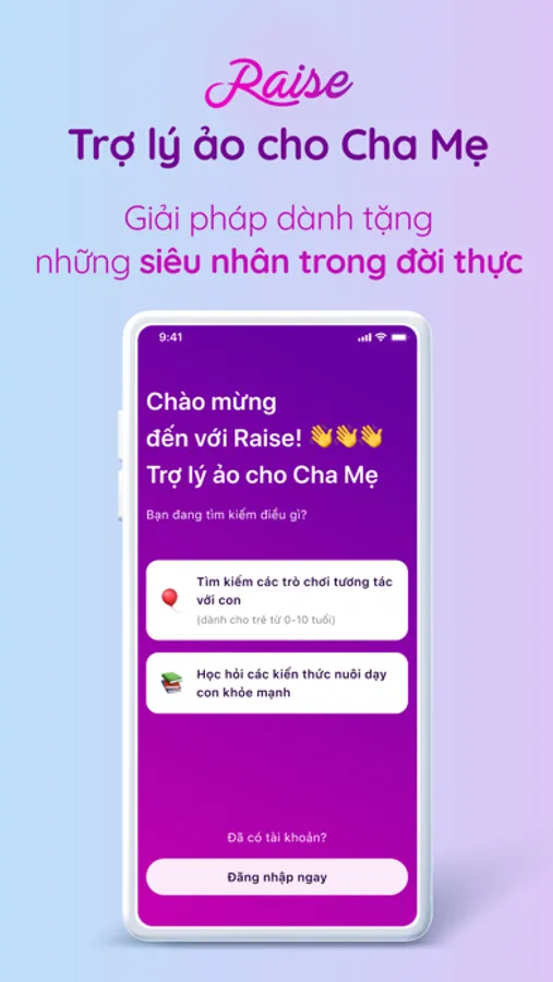 Raise - Trợ lý ảo cho Cha Mẹ là ứng dụng di động thông minh, đa tiện ích dành cho cha mẹ, được phát triển bởi những chuyên gia hàng đầu và giàu kinh nghiệm trong và ngoài nước, từ lĩnh vực giáo dục và công nghệ.