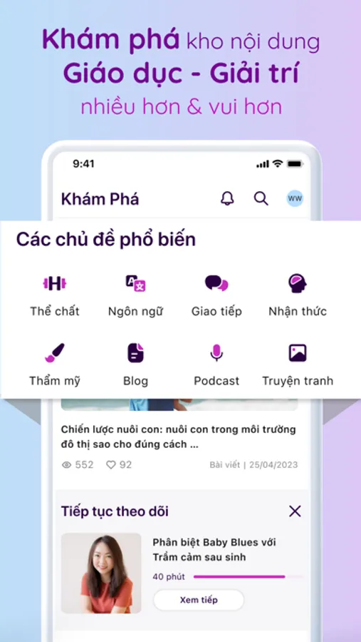 Để việc học làm cha mẹ vui hơn, và việc giải trí trở nên ý nghĩa hơn mỗi ngày!