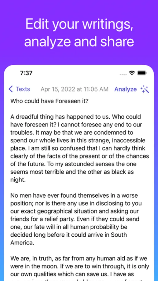 Used by millions of people for inspiration and entertainment since 2010, our popular writing analyzer is now available for iPhone, iPad, and Mac!