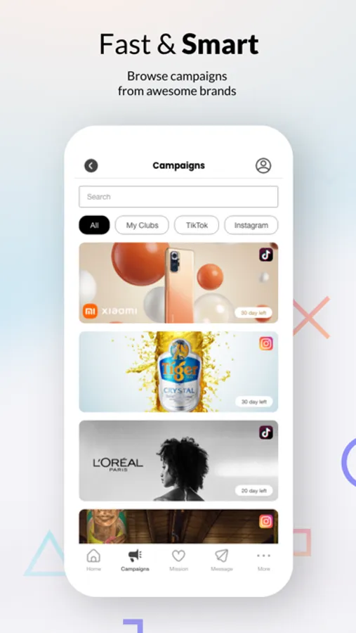 We make access to the campaign free for all influencers. Apply for an unlimited number of campaigns daily 100% free. Download the Fame App to see all campaigns you can start on Instagram and TikTok, manage all your active campaigns, access live chat, and get paid directly to your local bank account upon completion and approval from brands.