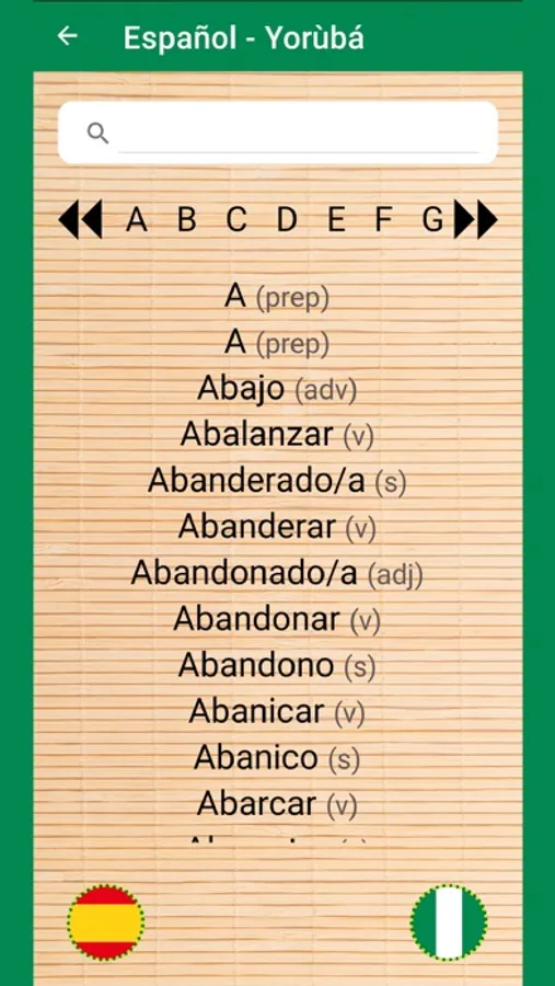 La App Diccionario Español Yorùbá y Yorùbá Español, cuenta con más de 30.000 palabras traducidas y es la primera App con textos corregidos y traducidos del Español al Yorùbá y del Yorùbá al Español por nativos parlantes de ambos idiomas. Hemos tenido en cuenta los signos de puntuación originales de cada idioma para mostrar una traducción fideligna corregida por profesores cuya lengua materna es el Yorùbá.