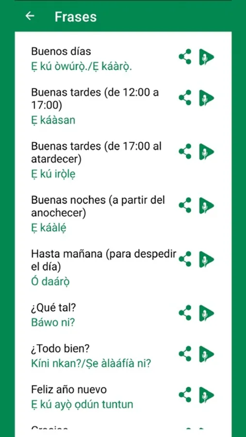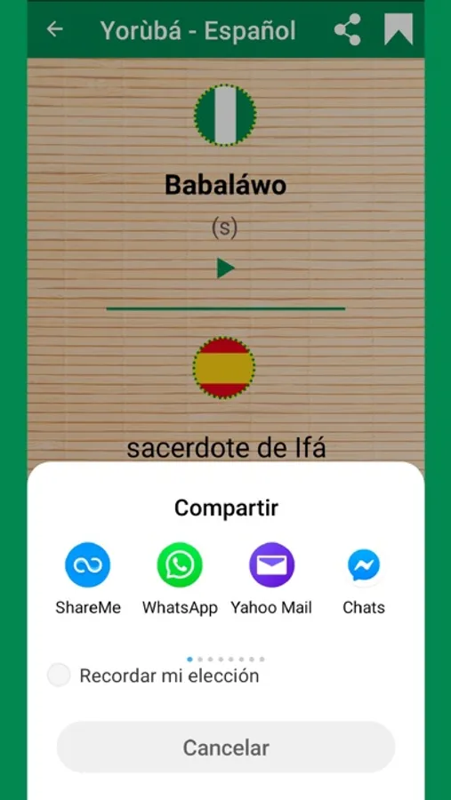 Además podrás escuchar la verdadera pronunciación de las palabras Yorùbás.
