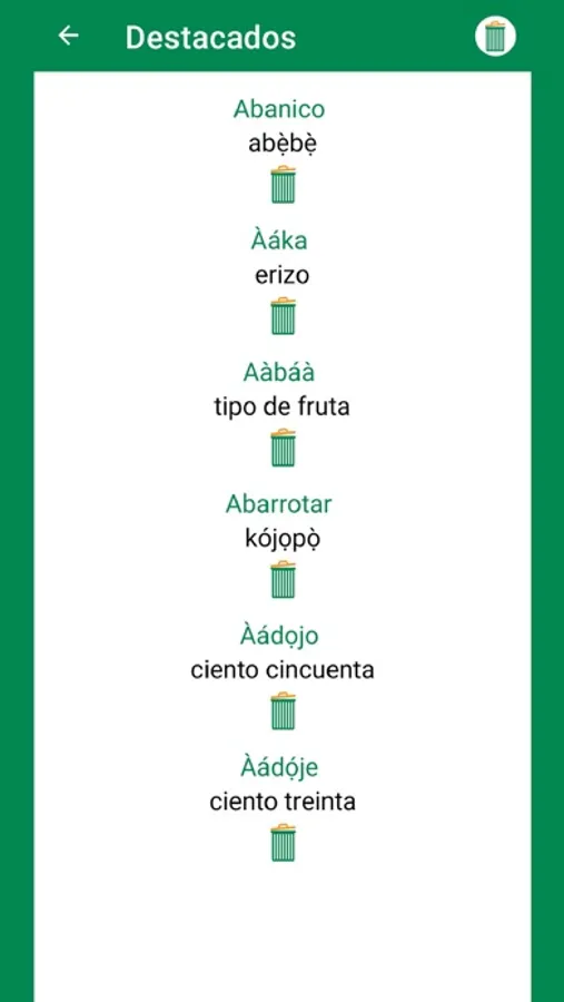 Este diccionario te ayudará en el estudio de ambos idiomas y será especialmente útil para los practicantes de Ifá Òrìshà. Además contiene: el abecedario Yorùbá y ejemplos de pronunciación, frases útiles, los números, historial de busqueda, posibilidad de compartir y guardar como destacadas tus palabras favoritas.