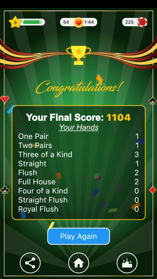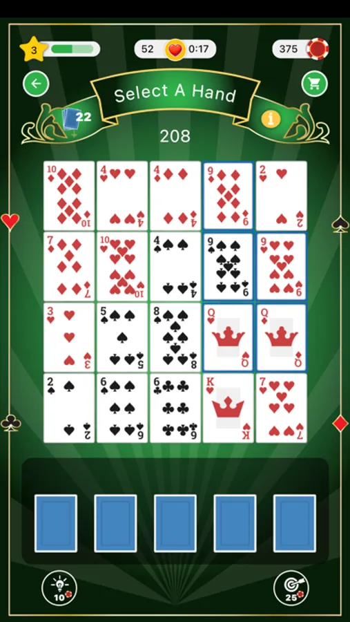 Welcome to the unique game of Royal Flush Solitaire - build the best hands you can from the available cards to get the highest score.