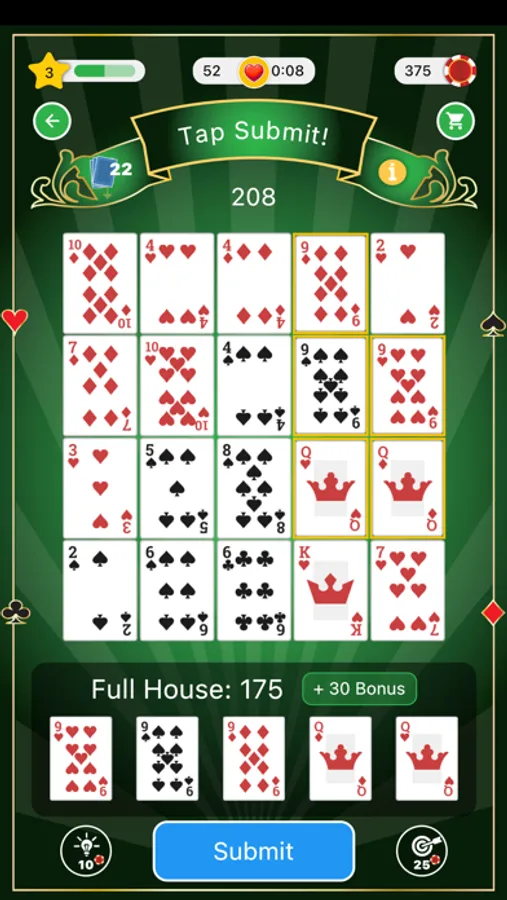 Royal Flush Solitaire captures the essence of the solitaire game, allowing you to choose between a quick easy game, or a strategy-driven game where you plan how the cards will fall into place to make the next hand even better.