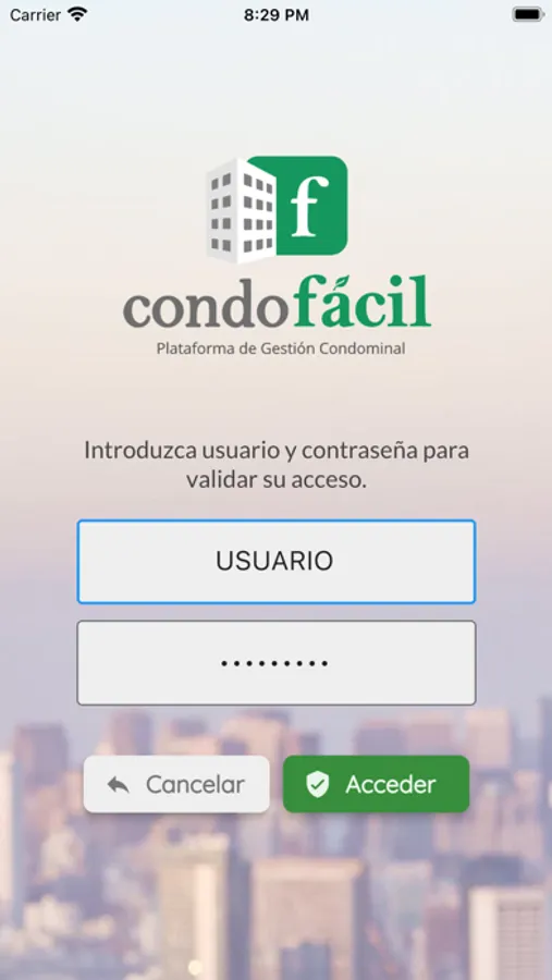 Para poder utilizar Condofácil, tu administrador de condominios debe proporcionarte un usuario y contraseña con el que te puedes conectar y usar las funcionalidades de la aplicación móvil. Si tu administrador no utiliza Condofácil.com para administrar tu condominio, no podrás utilizar esta aplicación.