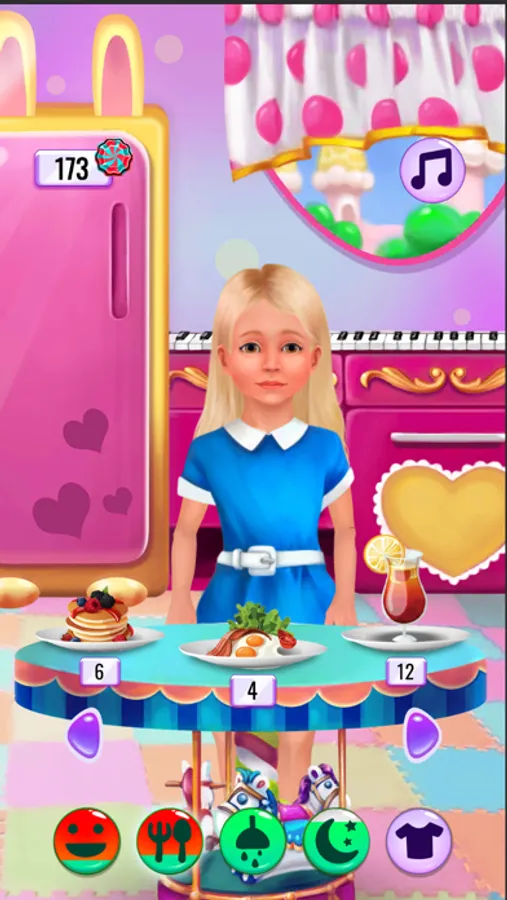 Welcome to the amusement park! This is Nastya, your friend. Take care of her, feed her, bathe her, put her to bed. Nastya loves to buy delicious food, make repairs, various interesting games and fun music. Welcome to game!