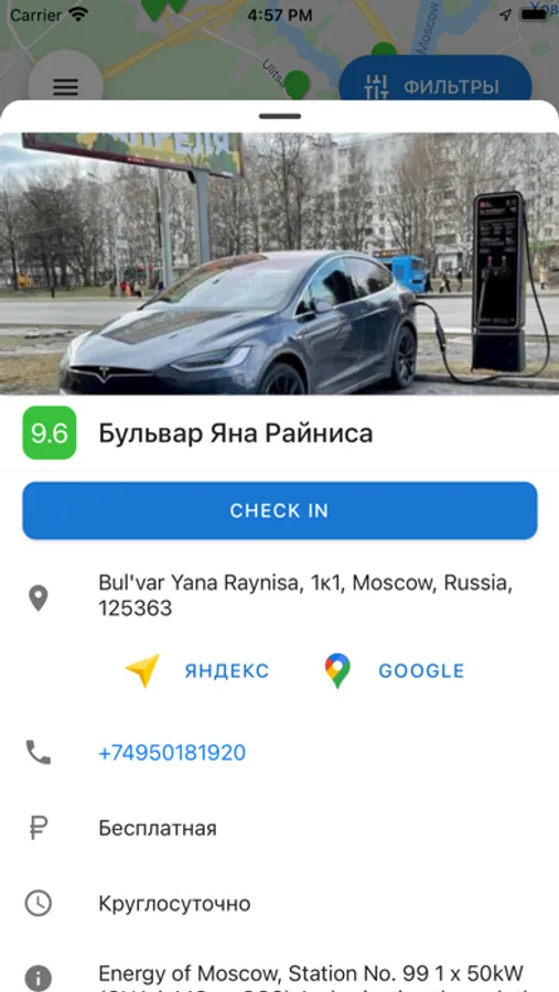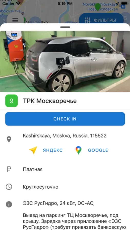 - Смотреть рейтинги станций, доступность в режиме реального времени, фотографии и описания.