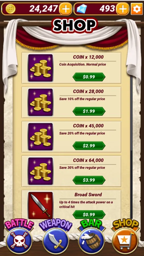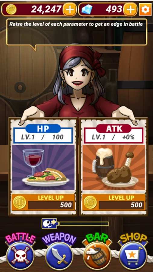 Use the coins you earn after battles to level up your weapons and prepare for the next strong enemy!