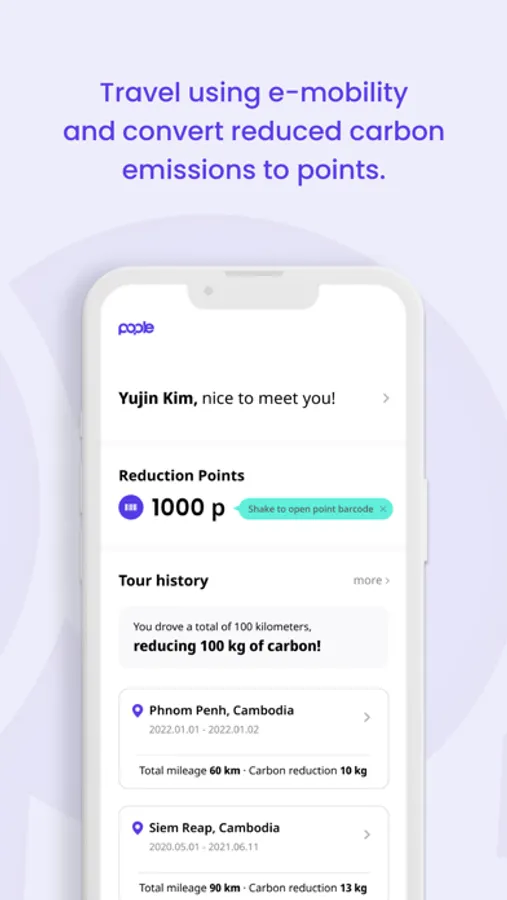 - ‘Carbon reduction points’ obtained through travel When traveling, we convert the greenhouse gas reduced by using e-mobility into points. Points can be freely used at POPLE STATION CAFE.