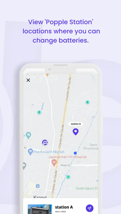 - Charging station & travel spot location at a glance Replace the battery by locating the nearest charging station on the map provided. It is convenient to consider the route by checking the location of charging stations and tour spots at a glance. You can also check the number of replaceable batteries at each charging station.