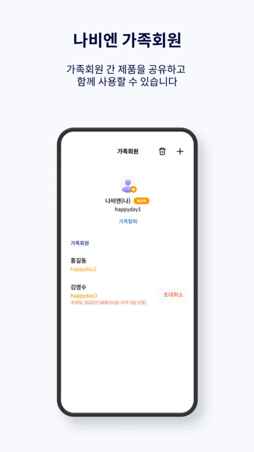 1. 여러 사용자들끼리 하나의 가족그룹으로 초대해 보세요!