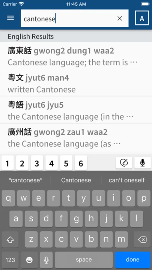 1. Search in English, Cantonese, or various romanizations like Jyutping and Yale
