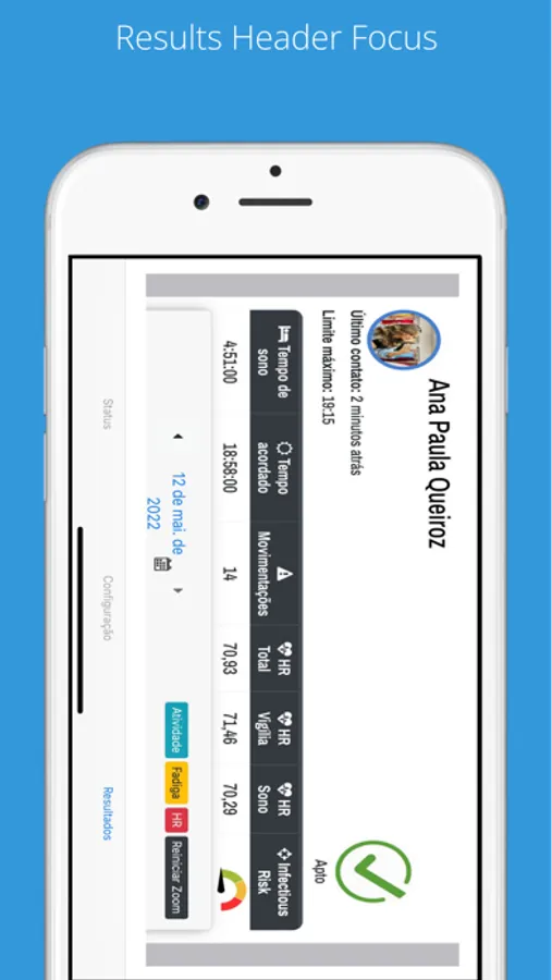BiomarkerAI utiliza inteligência artificial na nuvem para avaliar dados biomarcadores de saúde física, e determinar níveis relativos de fadiga e estado físico do usuário, visando evitar risco operacional individual e coletivo.