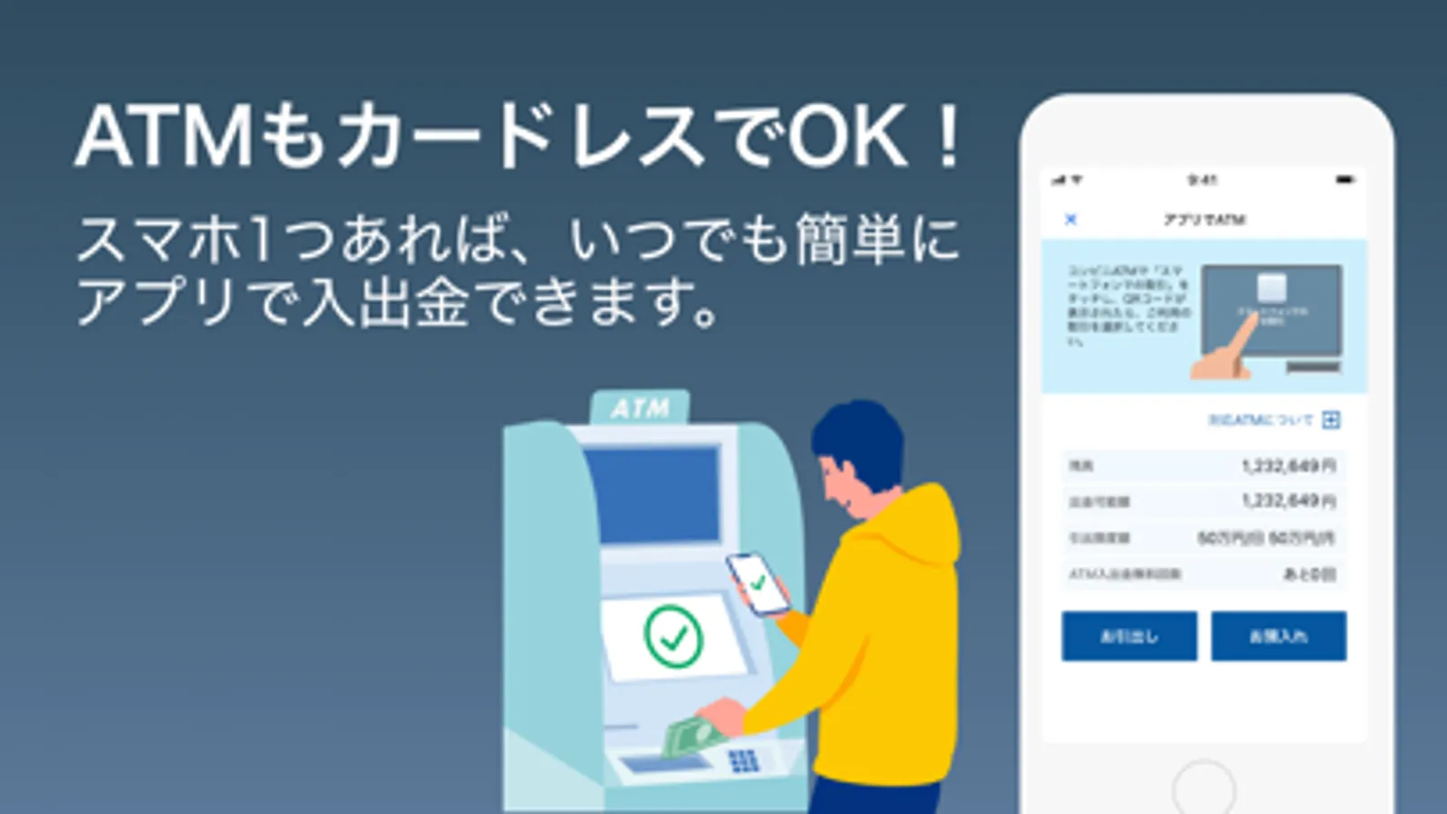 ◆取引もATMでの入出金も、スマホ1つでOK