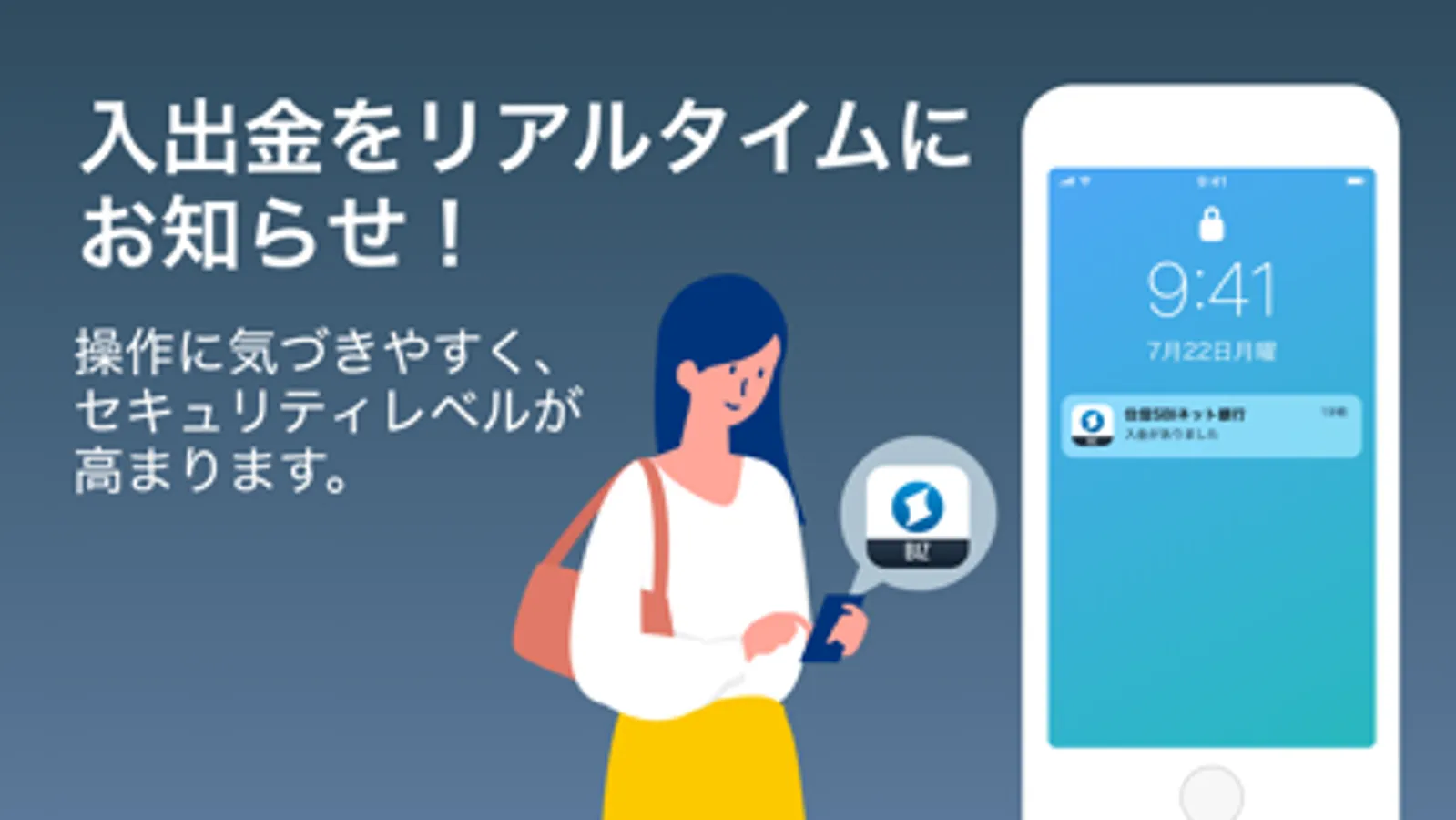 ・入金や振込受付などのお取引情報をリアルタイムに通知します。
