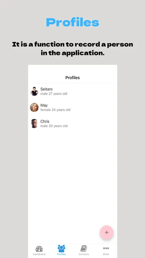 All data(Profiles, Contacts) is stored on your device. They are not stored in external cloud services, etc.