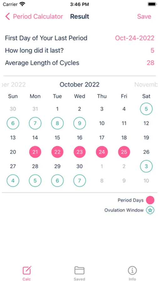 Use this App to estimate the future period days or the most probable ovulation days.We also help you save the calculation results (if desired) for easy reference and use in the future. This is a very intuitive App, simple and easy to use.