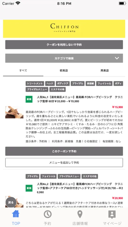お得なクーポンが配信されます。ネット予約時にクーポン利用での予約も可能なので来店時もスムーズに施術頂けます。
