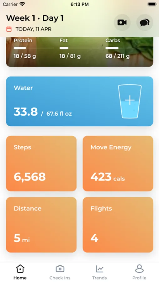 The app integrates with Apple Health to show your daily activity - distance, steps, active energy, and flights to help you better achieve your goals.