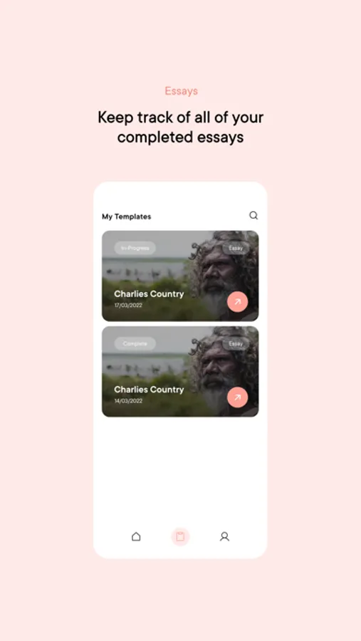 The essay can be written all at once or completed over time as the answers are stored in your “in progress” files. Completed essays can be shared via pdf in email, messenger, SMS and more and all completed essays are also stored in-app.