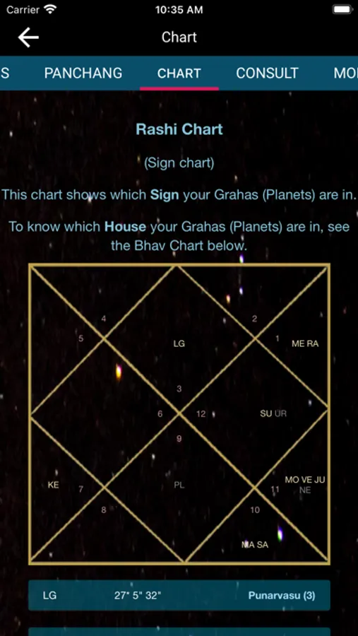Generate accurate Jyotish Vedic Horoscope / Birth Chart / Kundli. See Nakshatras and Panchang. Most importantly find out the Real accurate position of the Grahas (Planet s)