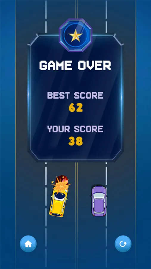 Let's see how well you handle these two smashing cars. This game allows you to have ultimate fun and joy. You can easily tap and change the lane and collect collectibles by avoiding the red colliders.