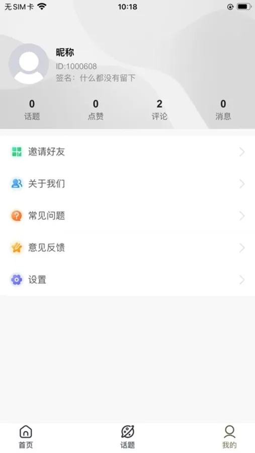 我的:可以发布话题,记录自己点赞或评论过的文章,查看关于APP的一些设置及简介