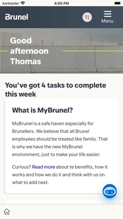 The Brunel Specialist app provides access to the world of Brunel for specialists of this company. With this app you have everything you need to efficiently perform your work as a specialist at Brunel. View relevant information, communicate with other specialists and stay informed of the latest developments within the company. The app is easy to use and ensures that you are always and everywhere connected to the world of Brunel. Download the Brunel Specialist app now and stay informed of everything that happens at Brunel.