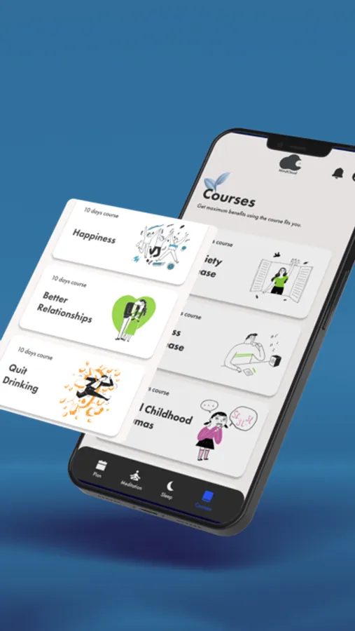 Follow guided meditation courses and improve your mental health. MindCloud is here to incorporate mindfulness into your daily routine. Our courses will help you to become more focused and refreshed, learn how to relax, handle stress, increase motivation and so much more.