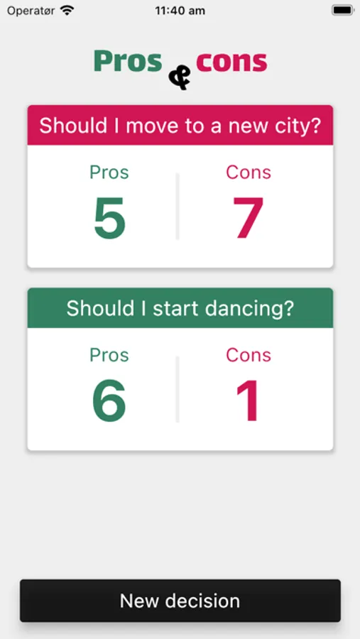 Welcome to Pros & cons lists! This app will help you organize and manage your decisions!