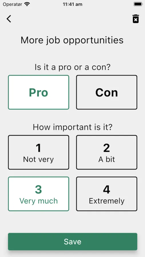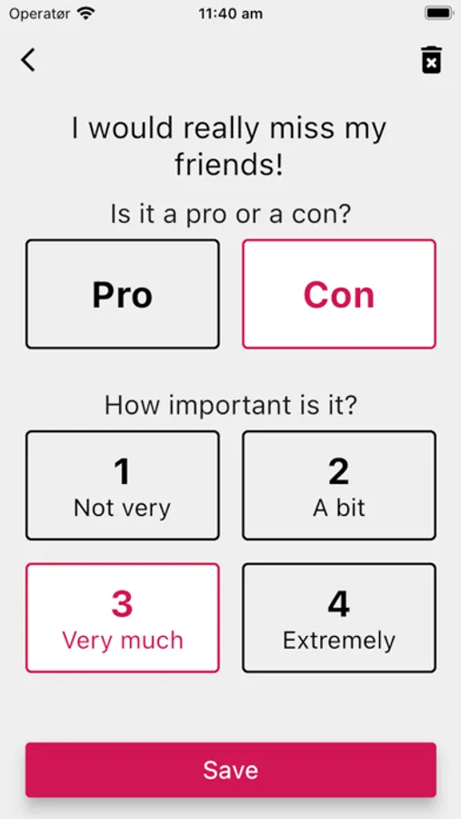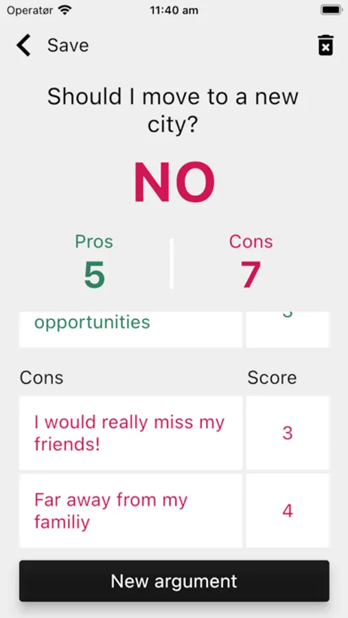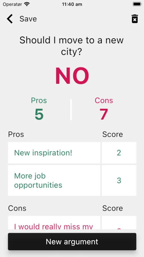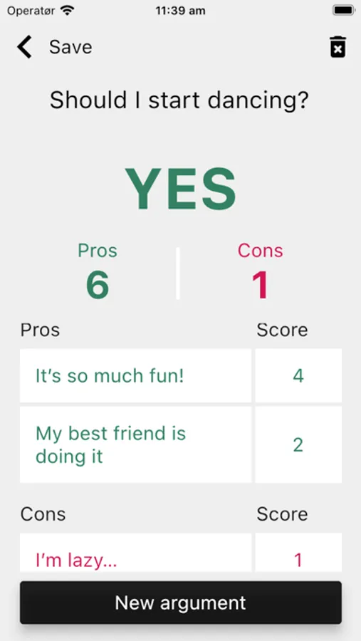 With the Pros & cons app you will be able to add your decisions and supply weighted arguments.