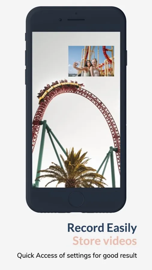 MixCam Dual bicamera can easily record and store videos with front and back camera at the same time. You can save videos for tour and other live events and record event and expression at the same time