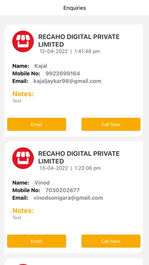 2. Manage Enquiries: See all Enquiries received from visitors with details of the visitor information