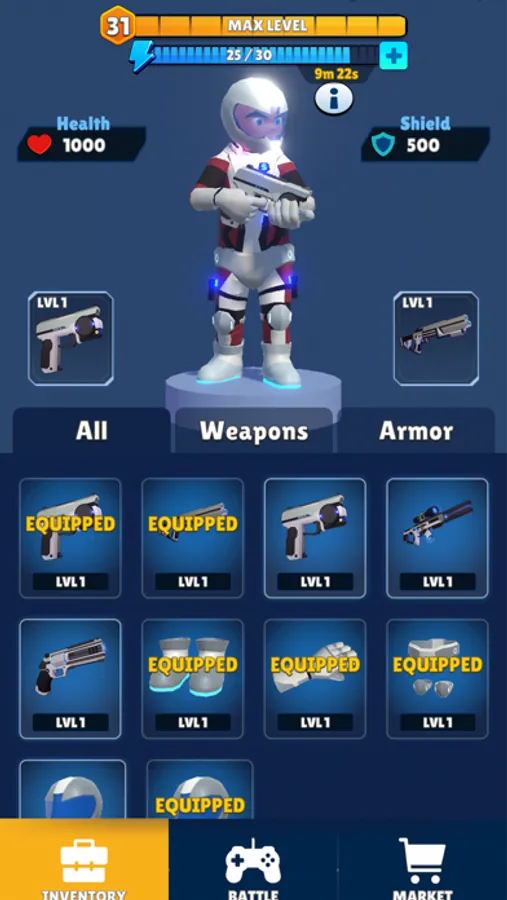 Upgrade your Hero to get stronger and find cool Weapons and Gear!