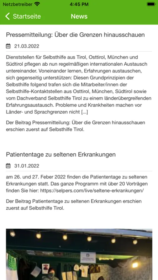 In dieser App werden Informationen zur Selbsthilfe bereitgestellt und aktuelle Veranstaltungen bekanntgegeben.