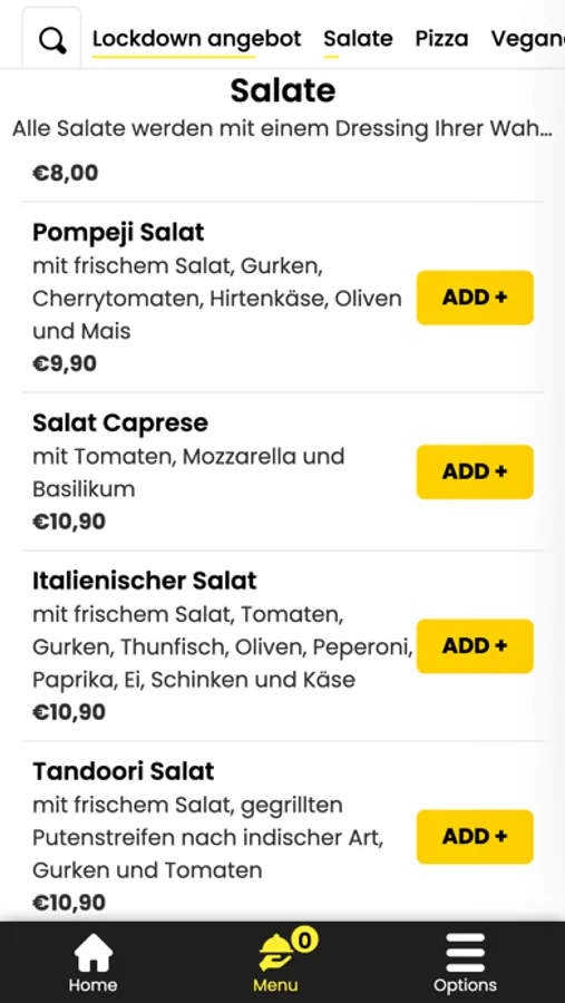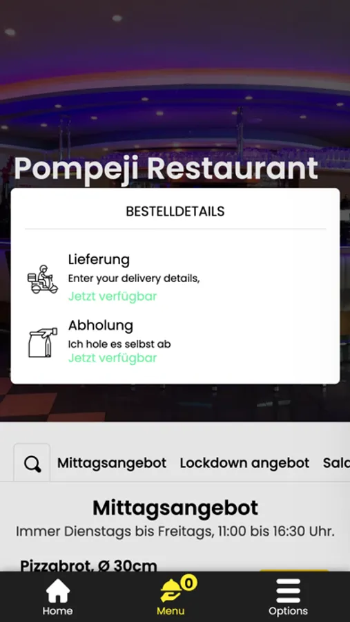 Mit der Pompeji Restaurant Mobile App können leckeres Gericht bequem von zu Hause aus genießen. Stöbern Sie in unserer Speisekarte, wählen Sie die Gerichte aus, die Ihnen schmecken, und geben Sie Ihre Bestellung in Sekundenschnelle auf.