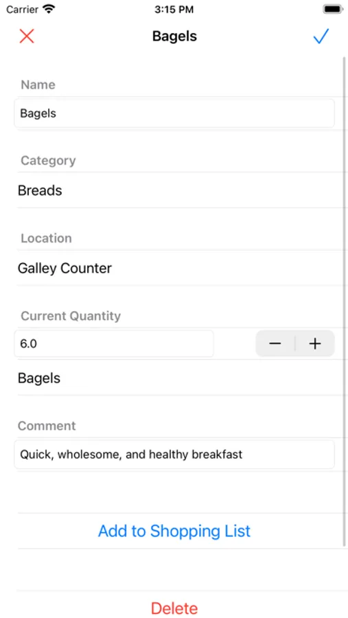 - No need to manually mark items up in your inventory after buying more, with a connected shopping list, press done, and marked items are automatically moved to the inventory.