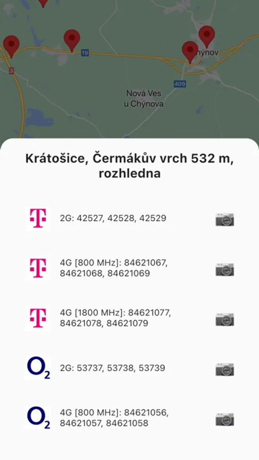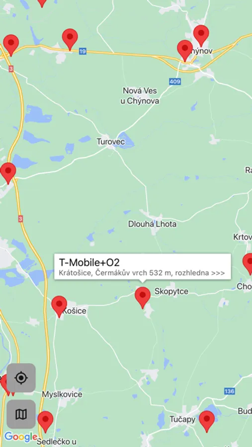 Zobrazení BTS českých operátorů dle komunitní databáze z www.gsmweb.cz