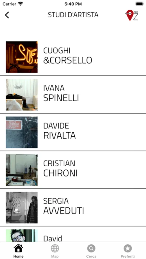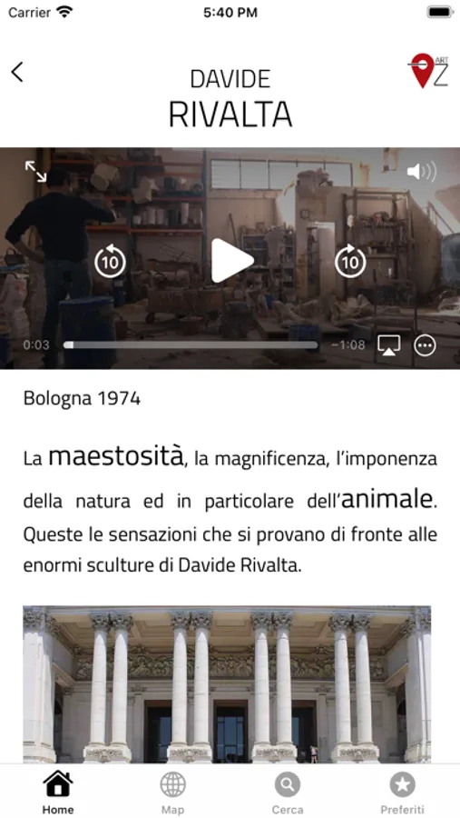 The application allows you to consult and save, on a geolocated interactive map, the places of contemporary artistic production such as ateliers, art galleries, museums, foundations, craft workshops and street art.