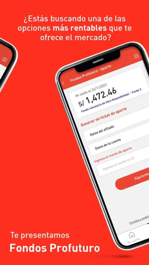 Visualiza, gestiona y toma decisiones informadas sobre tu fondo de pensiones. Nuestra aplicación te ofrece una experiencia intuitiva y segura para tener toda la información al alcance de tu mano. Con App Profuturo podrás revisar el detalle de tu fondo, sus movimientos y la rentabilidad generada.