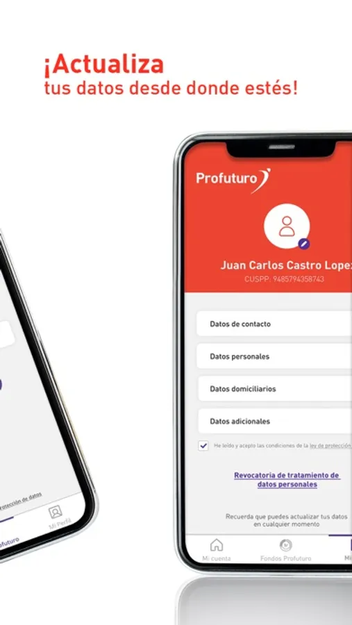 Actualiza y gestiona tus datos para recibir información relevante y oportuna. Nuestra aplicación te muestra todos los detalles de tu cuenta de forma rápida y sencilla para que puedas asegurar e invertir en tu futuro.