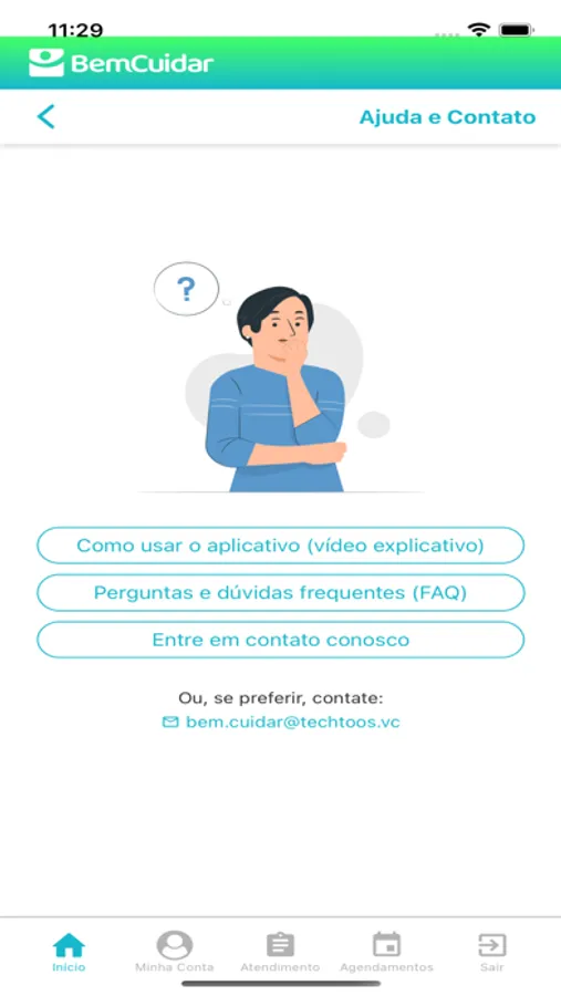 Em caso de dúvidas, use o canal “Fale conosco” do aplicativo ‘Bem Cuidar’.
