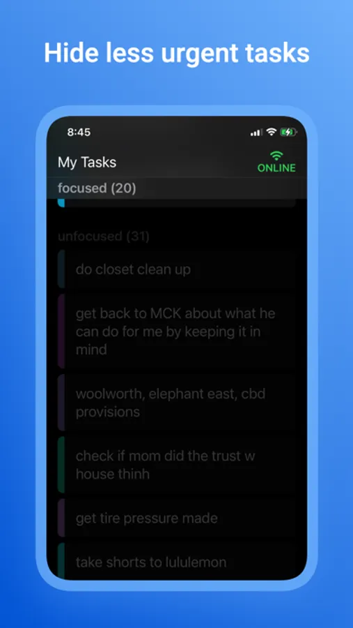 - Focus on urgent tasks, unfocus on less urgent tasks