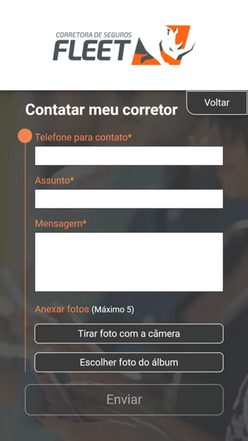 * Enviar fotos/imagens do sinistros ou documentos;