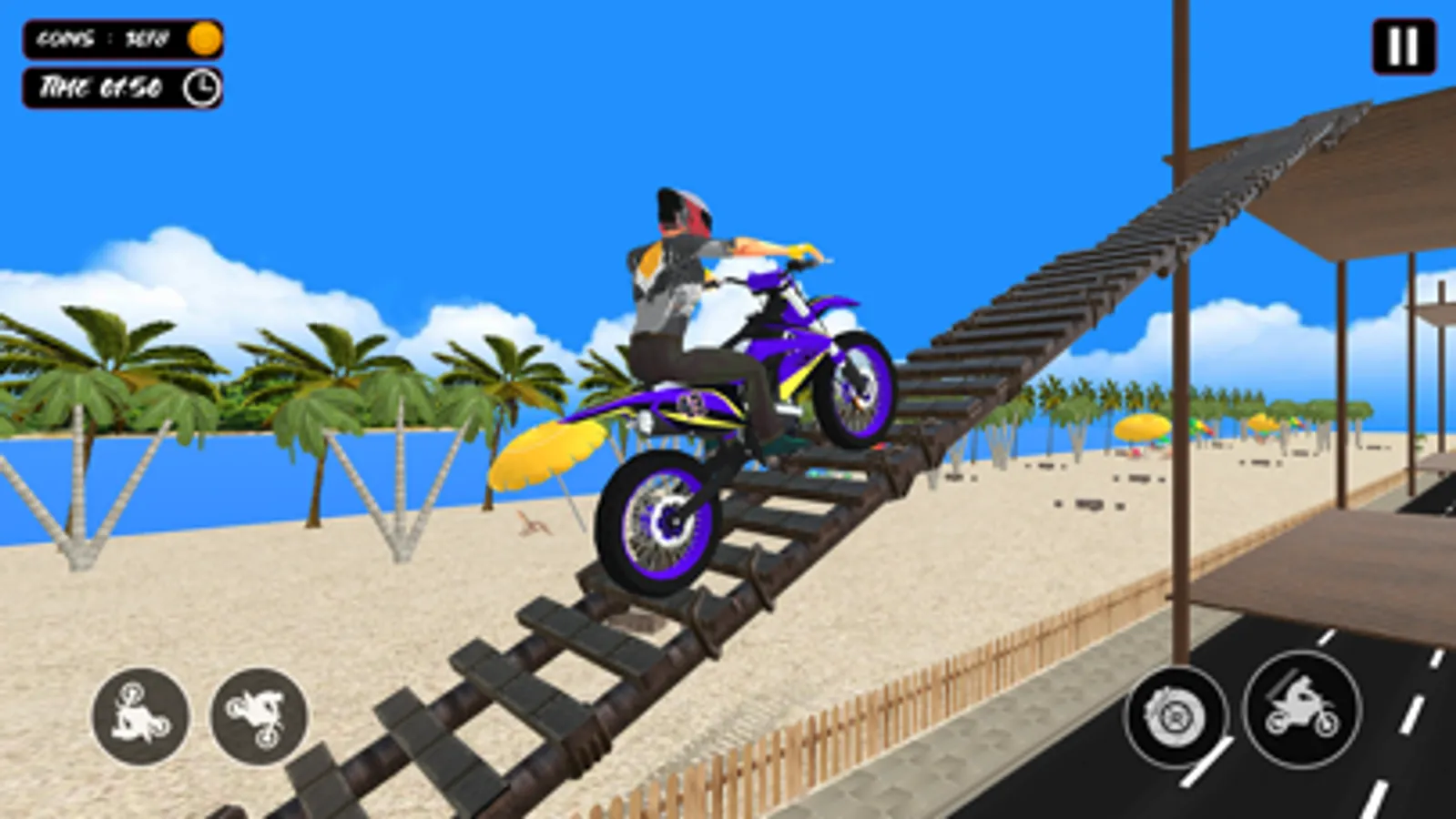 You will be rewarded after completing your task with coins and then later you can upgrade your bike. A realistic and eye-catching level boosts your mood in this bike racing game. The motorcycle racing game is easy to play and also challenging , you just press the forward button for the race but if you roll over then you will lose yet no worries you also can start over where you have fallen in the race. This bike racing game has different unique levels you will never get tired of playing this bike race game, you can also achieve real stunts in the motorcycle games. Dirt bike racing for bike lovers is filled with jumps and bumps. It's time to prove yourself as a top Bike rider in bike stunt games. Ride your bike on impossible mega ramps tracks and become a real-life bike racer in bike stunt games. Use your tricky stunts and flip your bike in the air.