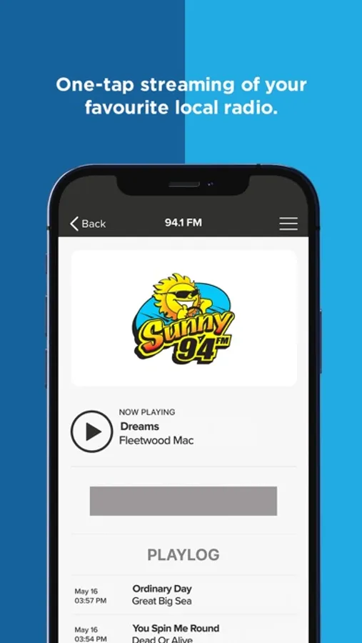 - Streaming: Listen to your favourite local radio station, Sunny 94, and look up recently played songs